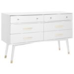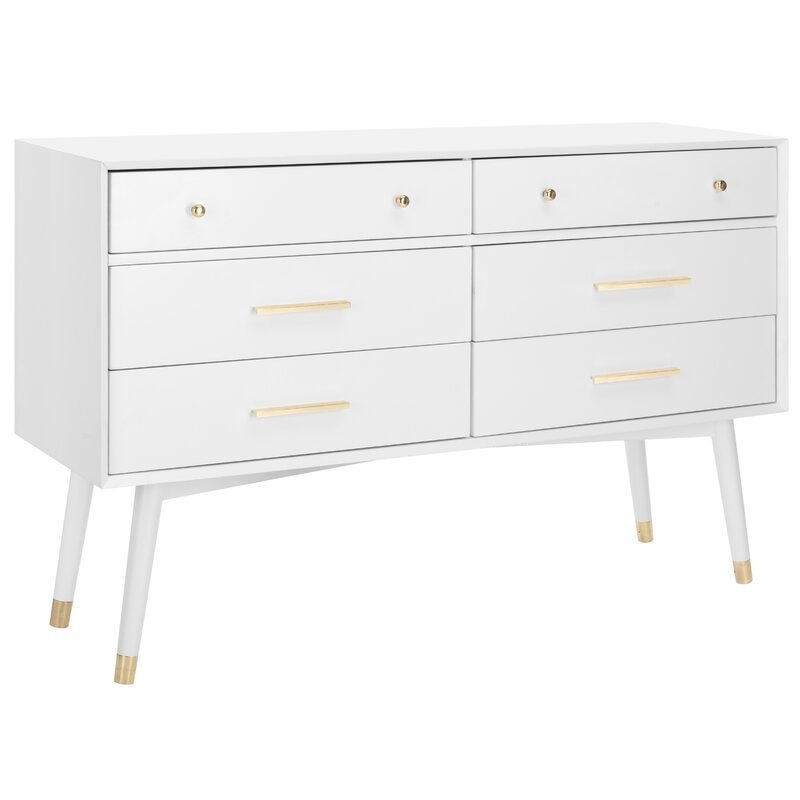 A contemporary, elegant room is the ideal setting for the Comfort Zone Exclusive Modern 6-Drawer Dresser. It keeps clothing, toys, and more arranged in a traditional white with a simple design.