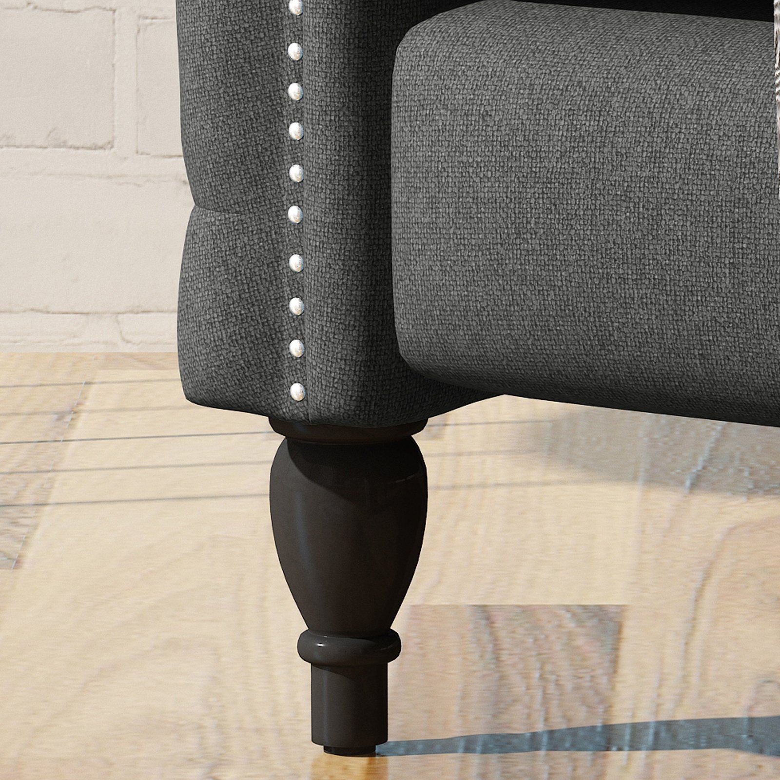 Any home should have this chic contemporary armchair. This chair offers all the beauty and comfort you want, with tufted sides and stud trim around the tops of the arms. This arm chair has it all with its extra comfortable cushioned seat and robust birch legs. By using this chic and cozy arm chair while you entertain, you may take pleasure in being the focus of attention.