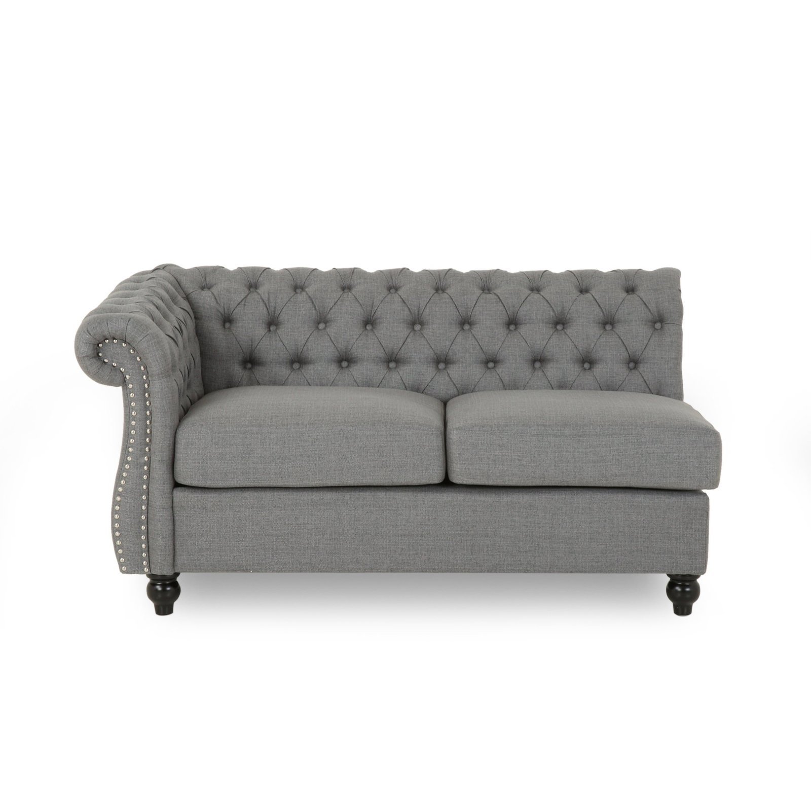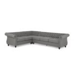 A gorgeous centerpiece with an antique feel makes opulent living accessible. Our Chesterfield-style sectional couch set adds a classic touch to any living area with its low profile design, vintage aesthetic, and classic features like deep button tufting, scrolled arms, turned legs, and nail head embellishments. This gives your interior space an exquisite touch and has enough for up to six people. With its sleek design and plush fabric, this sectional can completely change the way your living area flows.