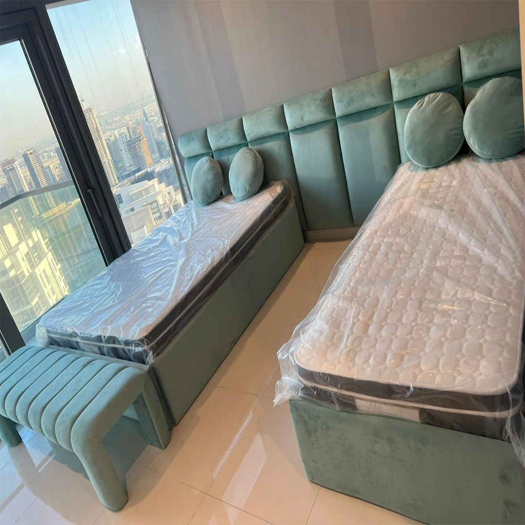 The Aqua Haven Twin Upholstered Bed Set is designed to create a calm, stylish, and comfortable bedroom environment. With its soothing aqua tone and soft upholstered finish, this bed set brings a fresh and modern look to any interior. It works beautifully in shared bedrooms, guest rooms, or luxury apartments where comfort and design matter equally.