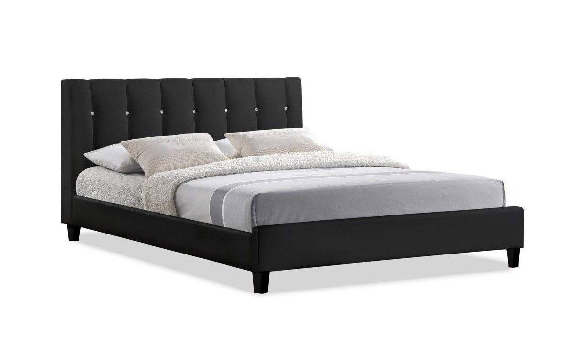 Enjoy a restful night’s sleep with the stylish Vino Modern Bed. The contemporary bed frame is made of solid rubberwood, foam padding, and imitation leather in black and white. The headboard is embellished with glistening fake crystal buttons for a touch of royalty.