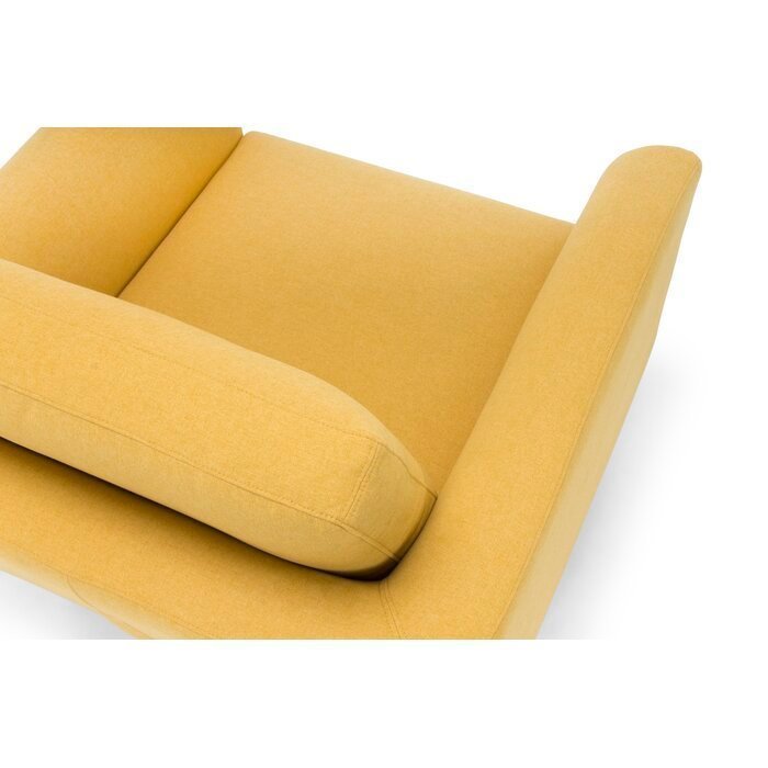 You can still have huge style even if you just have a limited place. This mid-century armchair will add huge style points to your living space. This chair’s clean-lined design is complemented by its tapered, splayed legs, knife-edge arms, and solid wood frame. The armchair’s upholstery is foam-filled for the ideal amount of give and is made of a sturdy, cleanable synthetic fabric. Cleaning and remote-finding are quite simple thanks to the detachable seat and back cushions (as well as their coverings). The back has simple button tufting to provide some flair.