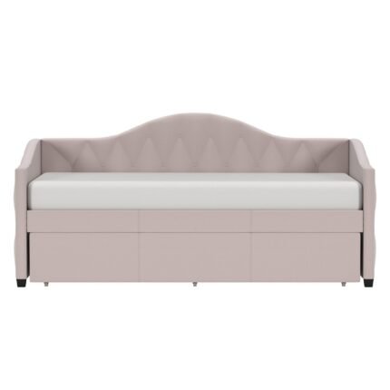 With this faux-leather trundle daybed, you can swiftly and comfortably accommodate visitors. With a roll-out trundle that you can stow away during the day, this multipurpose piece of furniture makes the most of space in a tiny bedroom. This daybed may be made into a comfortable seating area for older children and adolescents by adding some cushions.