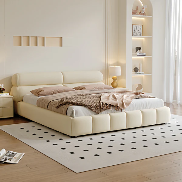 The most pleasant space in your home may be created by adding a Curved Headboard Bed from us, fluffy white bedding, and a ton of pillows. The sturdy headboard and frame of this bed are included. The headboard has deep diamond tufts and a curved, notched arch design.
