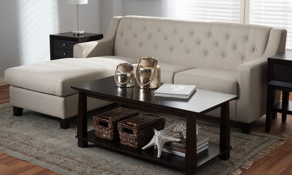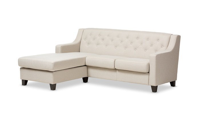 The two-piece sectional couch will add plush seating to your living area. The use of button tufting adds a touch of classic sophistication to the design. Make a statement in your living room with this stylish and modern sofa. Despite its lovely vibrant color, this plush sectional provides comfort.