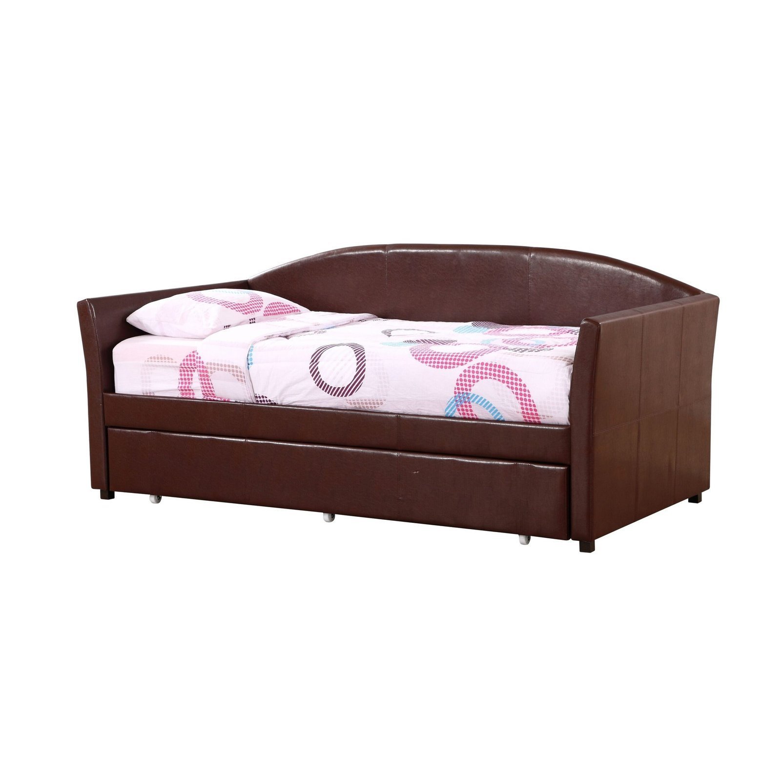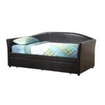 Adriana Faux Leather Daybed is the ideal complement to your guest room or child’s room. The casual look is distinctive and captivating. This trundle daybed’s exquisite construction and imitation leather upholstery will no doubt be admired for many years to come. The bed effortlessly complements a variety of home décor types and has a twin size on top and a twin size on the bottom. With this adorable bed, you can maximize your sleeping area.