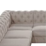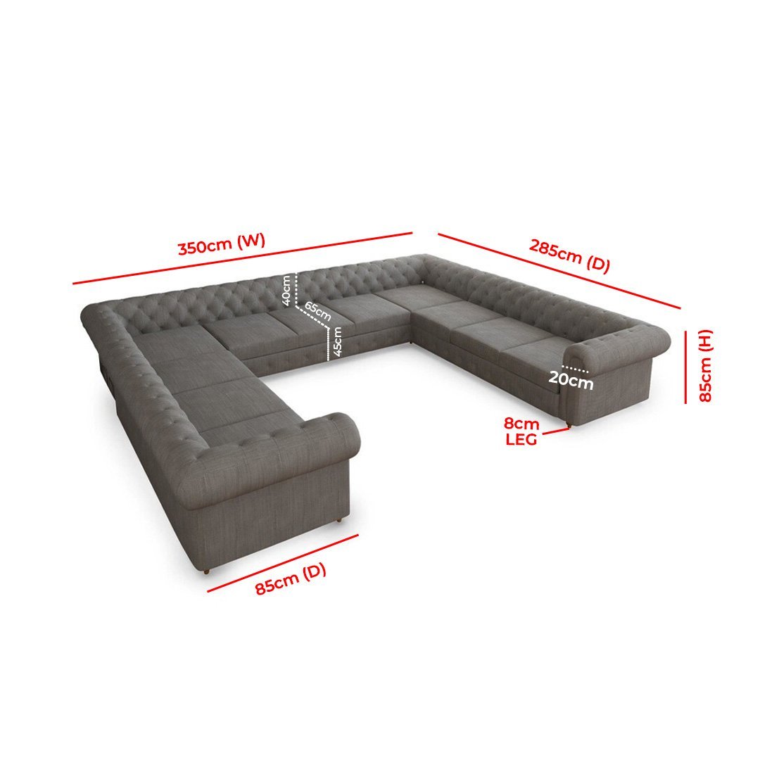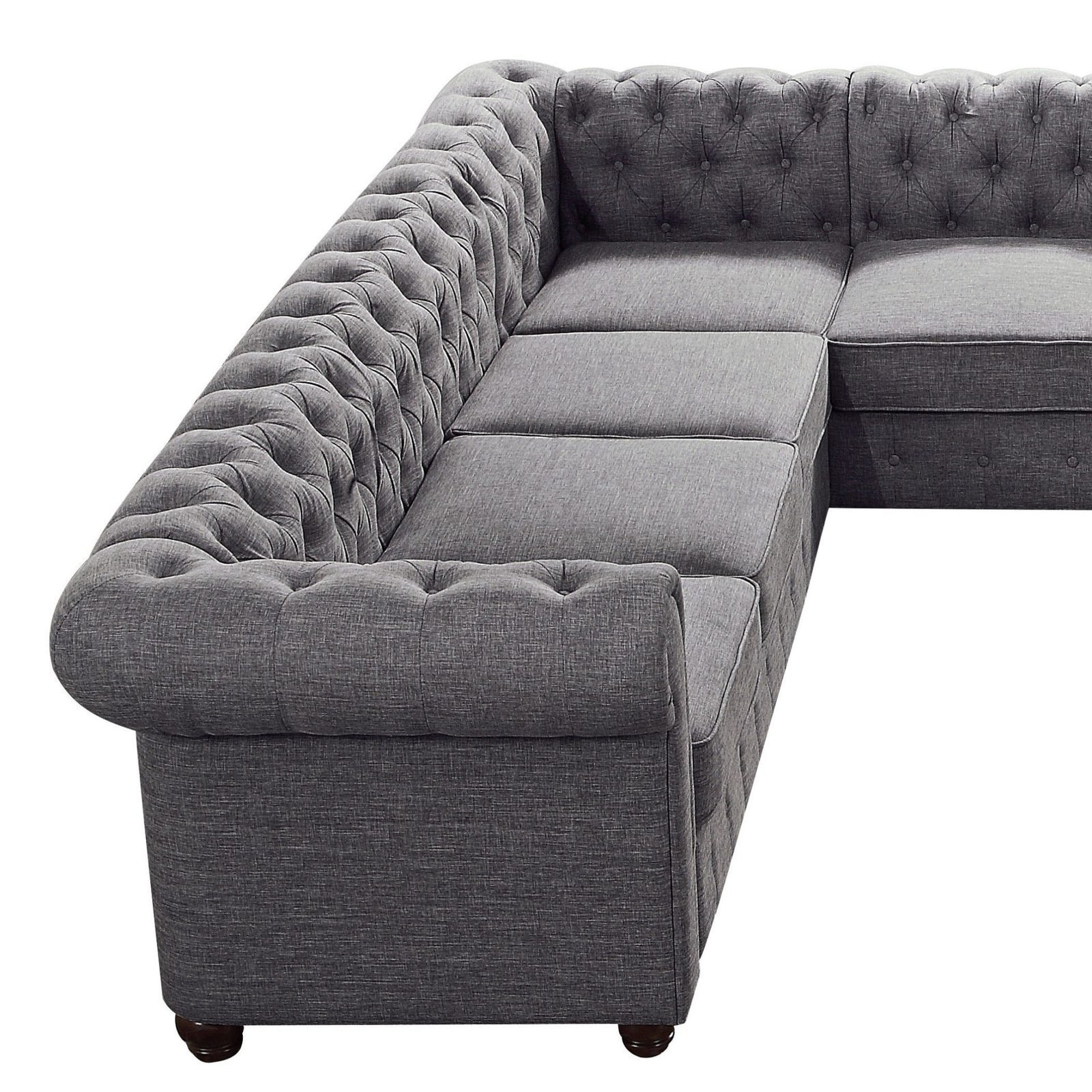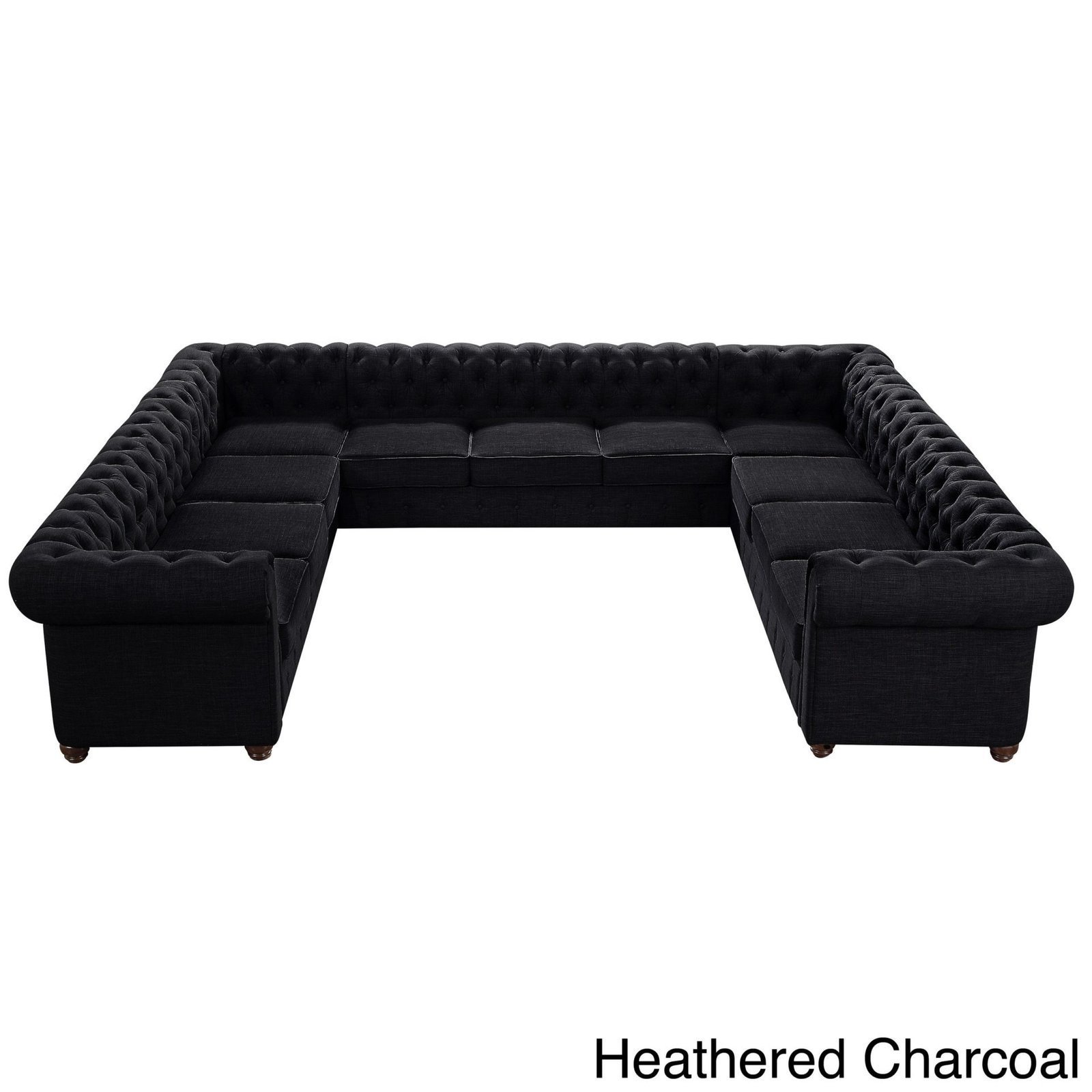 The Garcia U-shaped sectional couch, with its timeless deep button tufts and luxurious rolling arms, will enhance the interior design of your transitional home. With this sophisticated, linen-upholstered couch, you can elevate your living space. This sofa is ideal for lounging because it is filled with soft foam to provide extra comfort. Up to 11 people can sit comfortably at the large table.