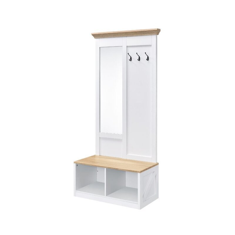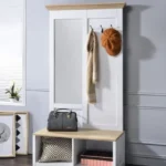 The hall tree’s open frame and simple lines, which were inspired by modern line art, add to the room’s fashionable vibe. Its Body Length Mirror and Bench finish brilliantly display your collections, and a Light Oak & White finish beautifully matches the Wood frame. 3 Metal Hooks and 2 Open Compartments provide you the chance to show off your unique sense of style.