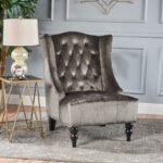 With the addition of this high-back club chair, your sleek, contemporary house will gain even more glitz. A strong wood frame guarantees long-lasting, dependable usage and timeless beauty, and turned legs compliment the smooth, tufted velvet fabric for a traditional appeal. A selection of upholstery colors enables you to create an environment that you can mix and match.