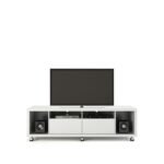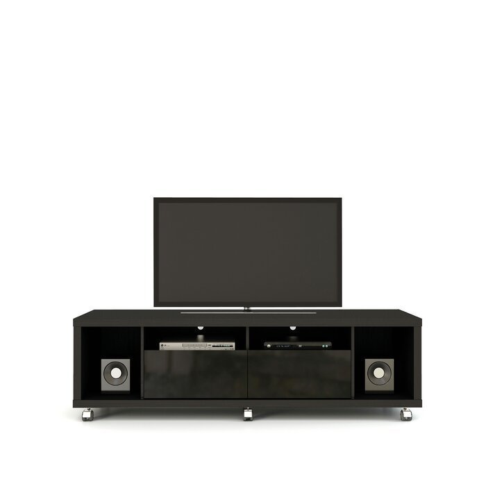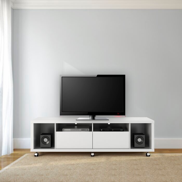 The TV Stand can easily fit into any tiny living room due to its low weight and modest size. The TV Stand features everything you need in one handy location, including 2 deep side cubbyholes ideal for your speakers, 2 shelves, and 2 sliding drawers. The slim wheels provide silent and simple movement, eliminating the need for heavy lifting. The TV Stand is attractive on its own or when combined with one of the TV panels, it makes it simple to attach your TV to the wall for improved viewing.