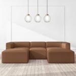 Faux leather can make a great addition to any living space. This piece’s luxurious seating and low back add to its modern appeal. The ottomans can be attached to the ground-level sofa to form a U-shaped sectional. This leaves plenty of space for your feet. Made from the best materials. The plywood and eucalyptus wooden frames are finished with plastic feet to conceal any scratches or scrapes. Are you unsure of the color? Do you need a larger size? The Hendrix modular sofa can be tailored to your specific needs.