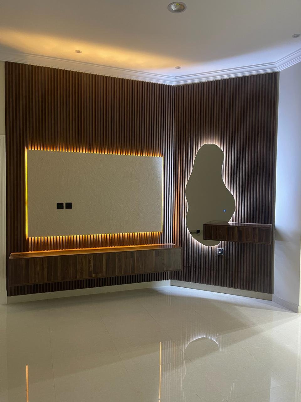 An LED design with a stylish mirror is a perfect blend of modern lighting and elegant décor, adding a luxurious touch to any interior space. This design enhances the overall ambiance by combining soft, ambient LED illumination with a sleek, reflective surface that creates a sense of depth and openness. The integrated LED lights are carefully positioned around or behind the mirror, providing balanced lighting that is both functional and visually appealing.
