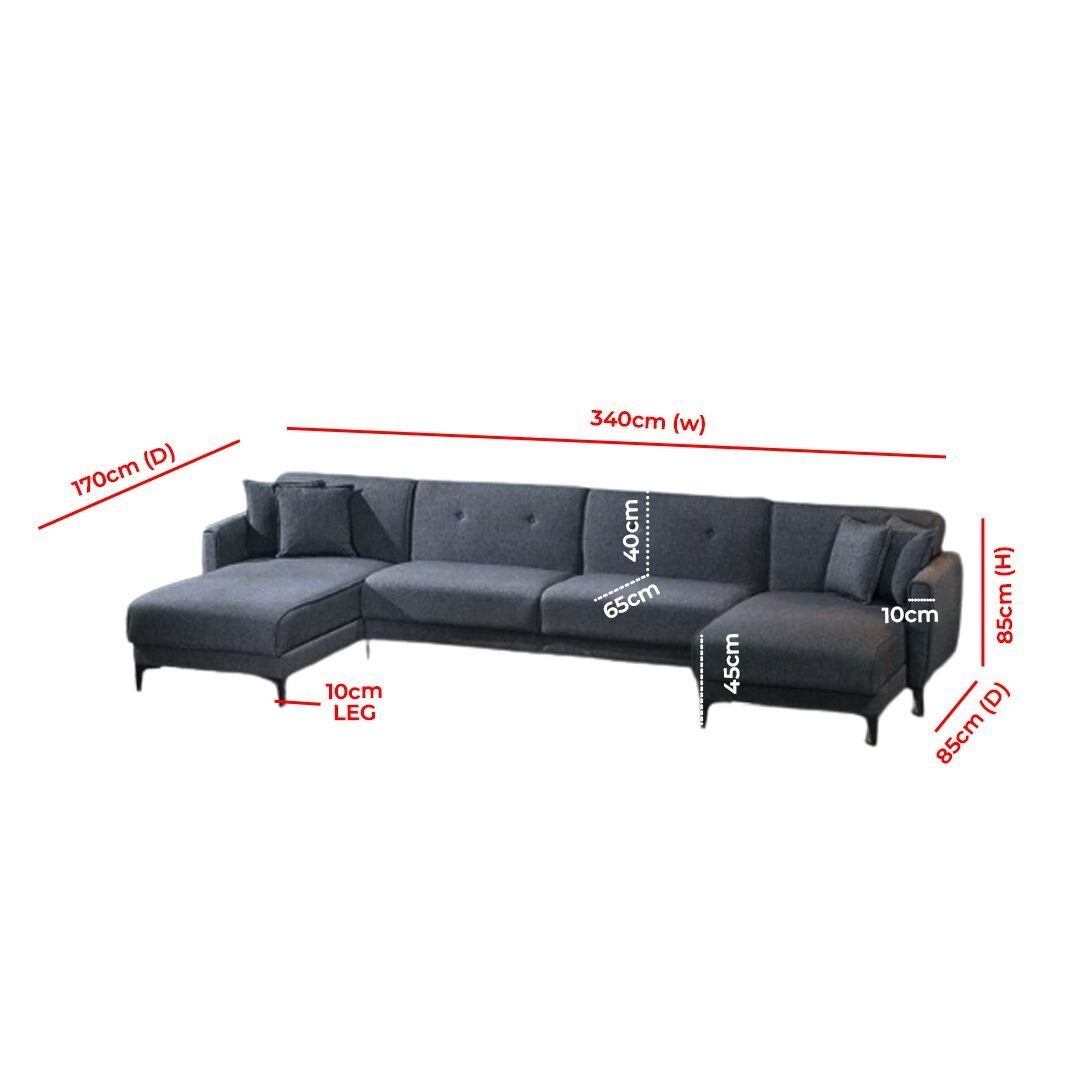 - Overall Dimension: 340cm W x 170cm D x 85cm H