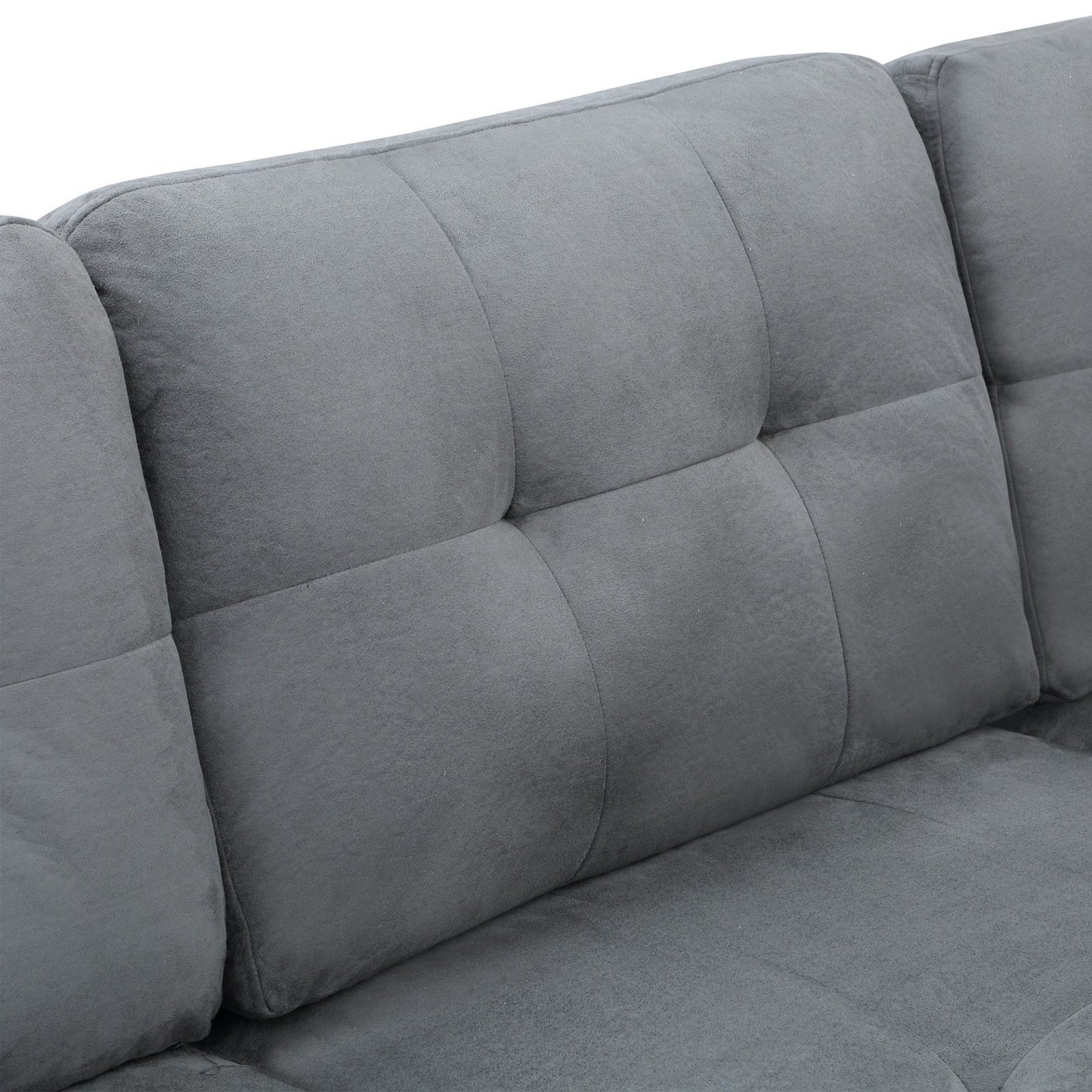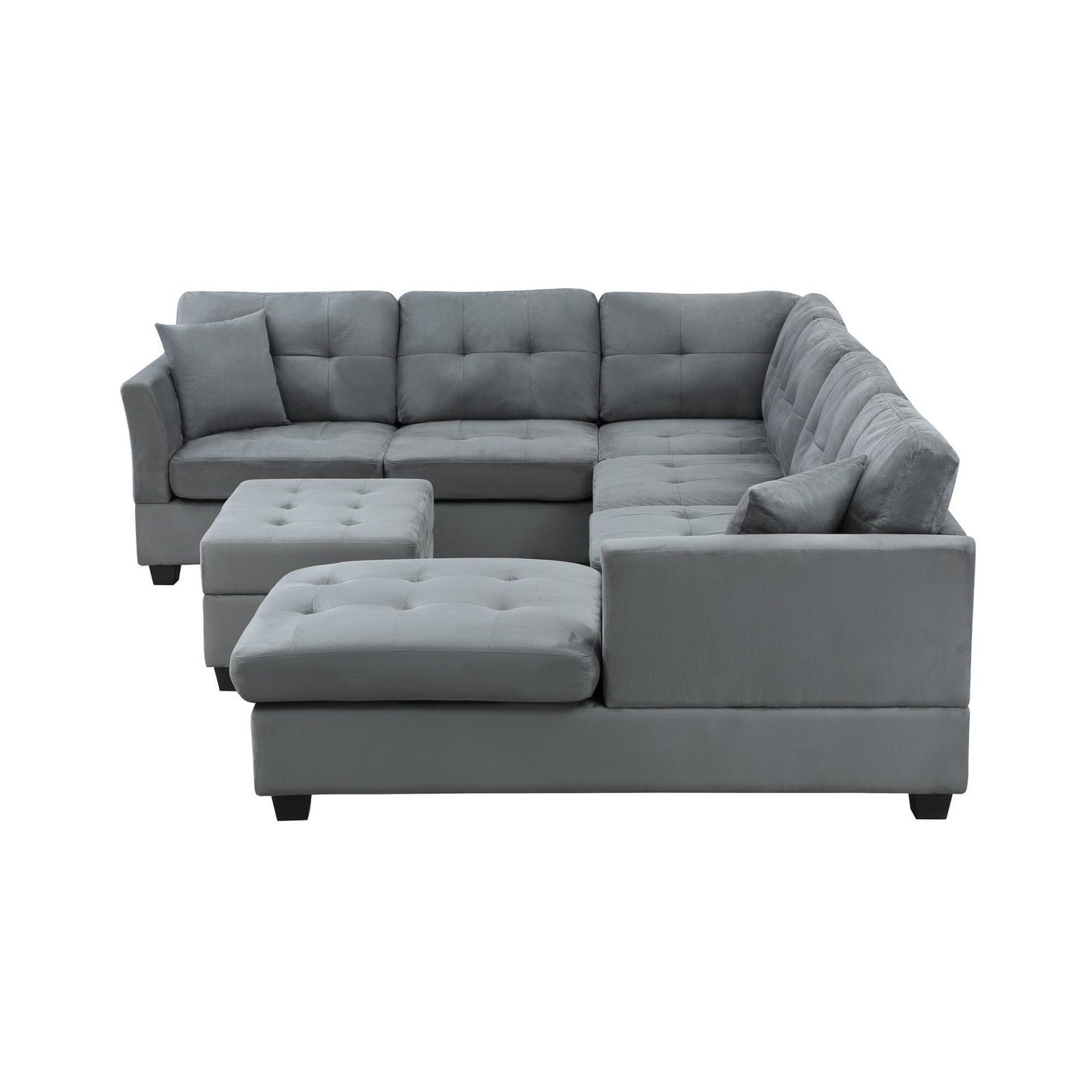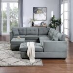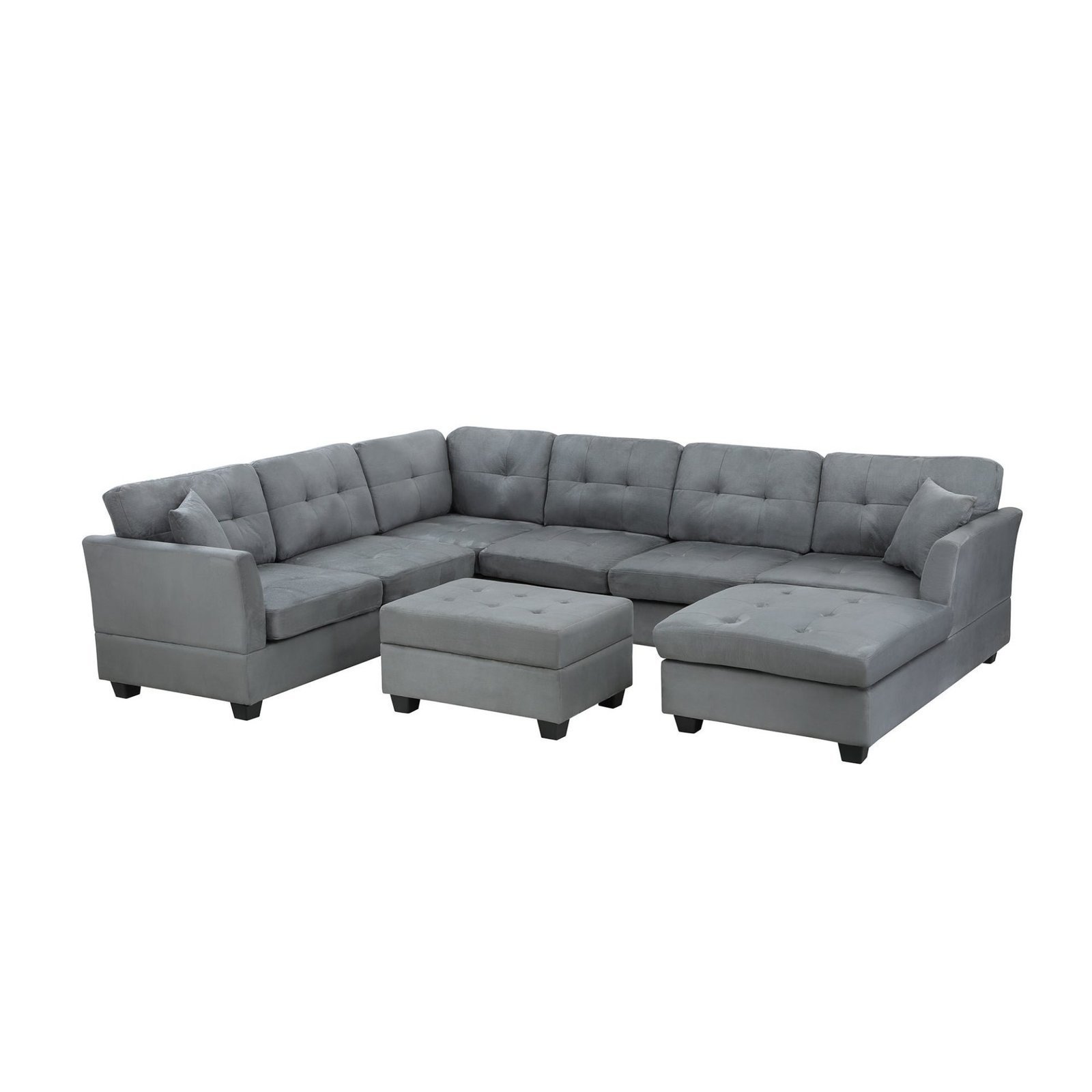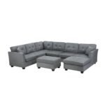 Any living area can accommodate this lovely 7-seater modular sectional couch with ottoman, which will also wow your visitors. The cozy dark gray linen fabric and complementary accent pillows will give your living space the newest style. The size will enable you to host a number of visitors, allowing everyone to take in the show together.