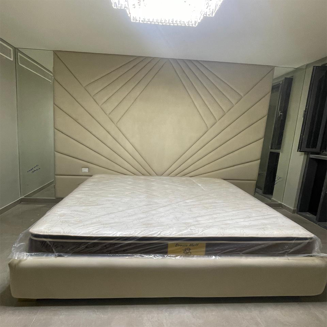 This bed is ideal for master bedrooms, luxury apartments, and upscale residential projects. Its neutral tone allows it to blend seamlessly with a wide range of color palettes and interior styles, from minimalist to modern luxury. The geometric headboard design adds character without overwhelming the space.