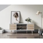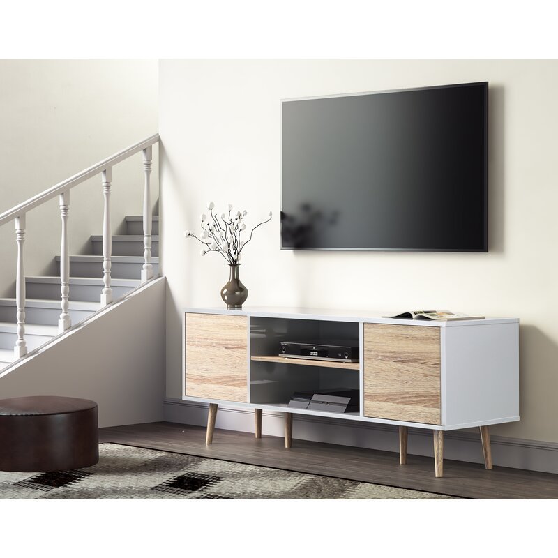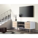 This entertainment center has a huge tabletop for your TV, cable boxes, and DVDs in addition to 2 shelf sections and push-to-open doors. You can wave goodbye to superfluous door knobs and easily retrieve your items with the straightforward push-to-open cabinet door!