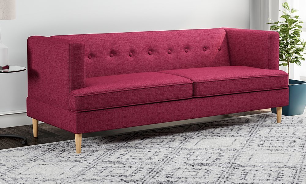 This couch is the perfect focal point for your mid-century modern room. The button-tufted back and flared armrests give the sofa a streamlined appearance. The design features a loose, foam-filled cushion with a securely upholstered back. It is covered in polyester-blend fabrics.