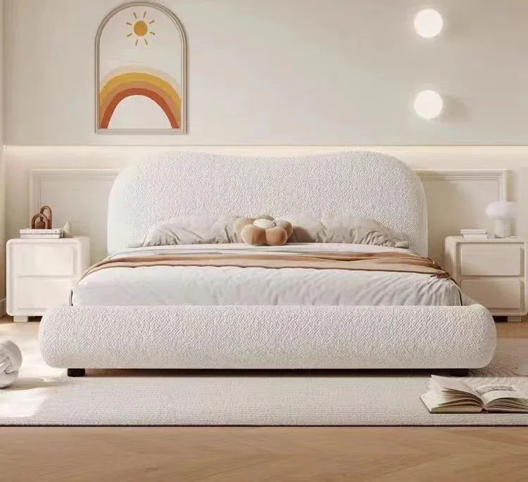 Wrapped in soft and luscious boucle fabric, our bedframe exudes sophistication and coziness in equal measure. The headboard’s cloud-shaped outline adds a touch of unique style, making it an instant focal point in any bedroom. Transform your sleep space into a cozy retreat, and complete the minimalist or hygge look with our bedside table and lamp.