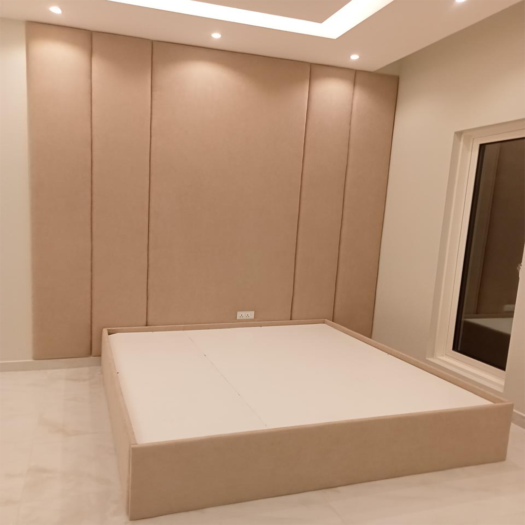 This upholstered bed fits seamlessly into minimalist, contemporary, and modern luxury bedroom designs. Its clean lines and soft tones allow flexibility in styling with side tables, lighting, and wardrobes. The design supports a peaceful sleeping environment with a premium feel.