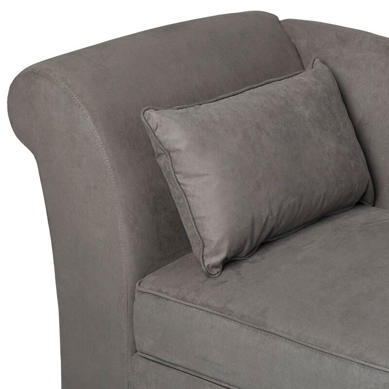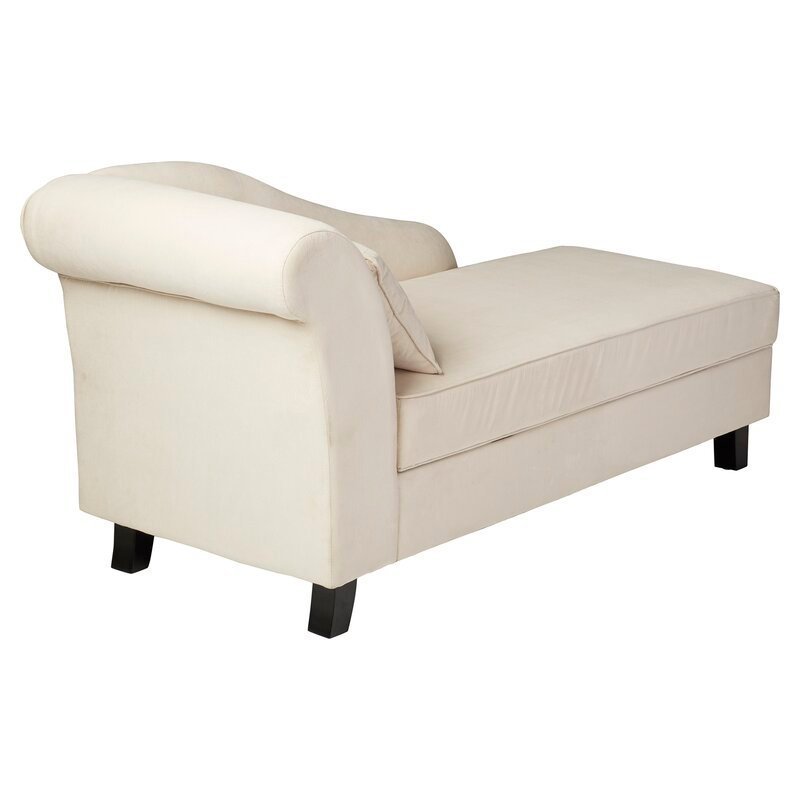 This chaise lounge is an updated version of the traditional chaise and features a clean-lined form with a sloping arm and a rolled back for a sociable appearance. This item is made of a strong and produced wood frame, foam fill, coil spring supports, and fabric upholstery. It is supported by four black-finished feet. With a toss pillow already included, it becomes more cozier because to its neutral tone, which lets it go well with many different styles and color schemes.