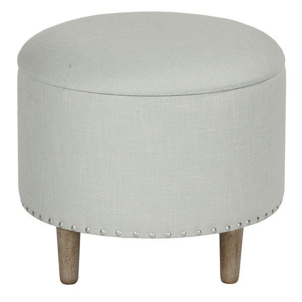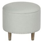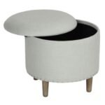 With this circular storage ottoman, you may have storage without sacrificing beauty. Including a roomy storage section for objects that still require a place to live and a comfortable padded top. Small wooden legs and a delicate gray linen cloth provide refinement.