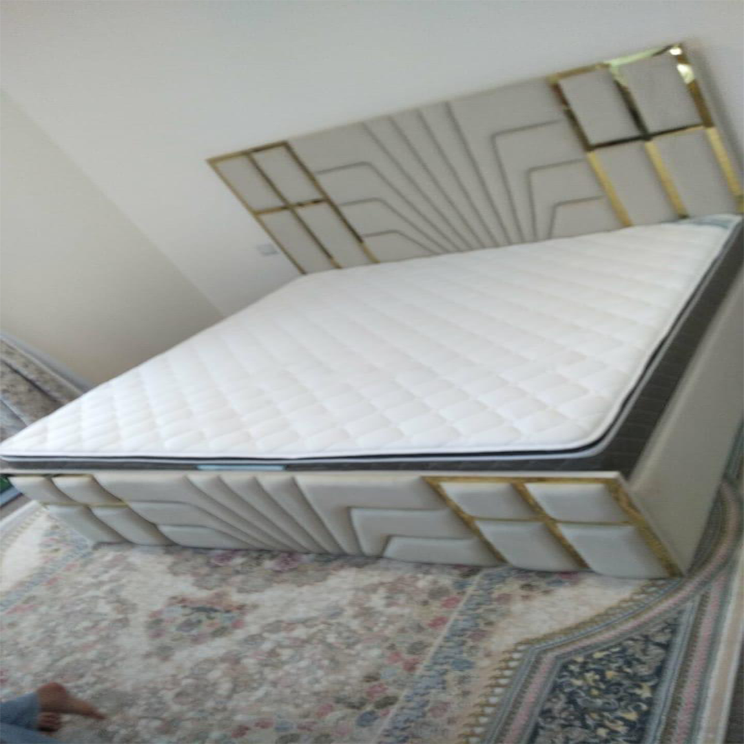This bed is perfect for customers searching for a luxury upholstered bed, modern designer bed, or a premium bedroom bed with gold accents. The neutral tone allows easy coordination with various color palettes, rugs, and furniture styles. Whether placed in a master bedroom or a high-end guest room, the Royal Line Luxury Upholstered Bed combines elegance, comfort, and durability—making it an excellent choice for those seeking both style and performance in bedroom furniture.
