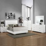 This line offers a white polyurethane coating polished to a high gloss finish, with beautiful modern design. The headboard of the bed has blue touch LED illumination. With this white bed, you may give your guest room a bright, airy feel. The bed, which has a low profile footboard-style frame and a white headboard, adds a contemporary air to any space and goes well with your existing design theme.