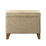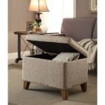 With this circular storage ottoman, you may have storage without sacrificing beauty. With this storage ottoman, you may have additional seats, space for storage, and a cozy footrest. Tan cloth with texture blends in with any decor, and the open top makes access to the storage area simple.