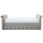 Use the traditional Chester Daybed to decorate a child’s room or guest bedroom. The twin-sized, upholstered frame has button-tufted sides, rolling arms, and a pull-out trundle for extra visitors. To match your current decor, pick from three upholstery colors.