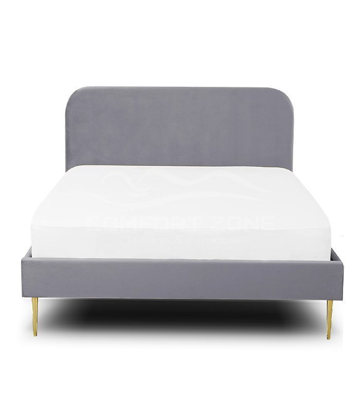 This grey upholstered bed will freshen up your bedroom. This bed’s frame is made of MDF. Its yellow velvet upholstery is soft to the touch and long-lasting, making it a fantastic accent to any dĆ©cor that will undoubtedly get interest. Golden legs complete the whole design and give the bed a glam look while also ensuring the solidity of the furniture.
