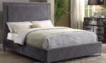 This gorgeous bed, made of oak and plywood and upholstered in a soft anthracite velvet, will match any bedroom’s furniture and dĆ©cor. The luxuriously tufted headboard’s exquisite design gives you the ideal spot to relax as you read a book or watch TV.