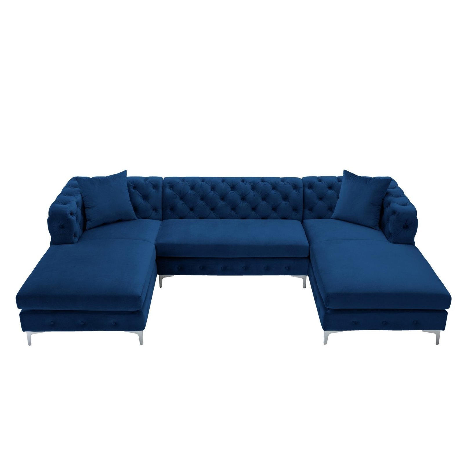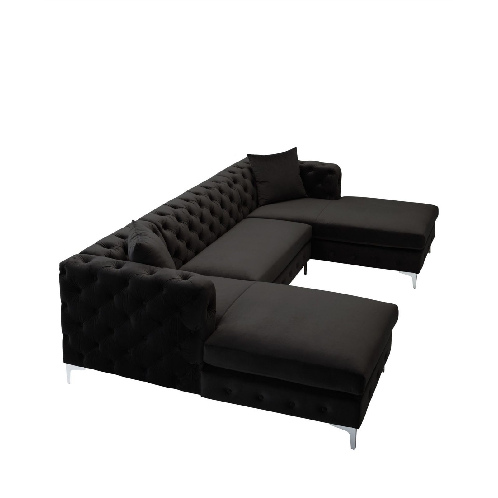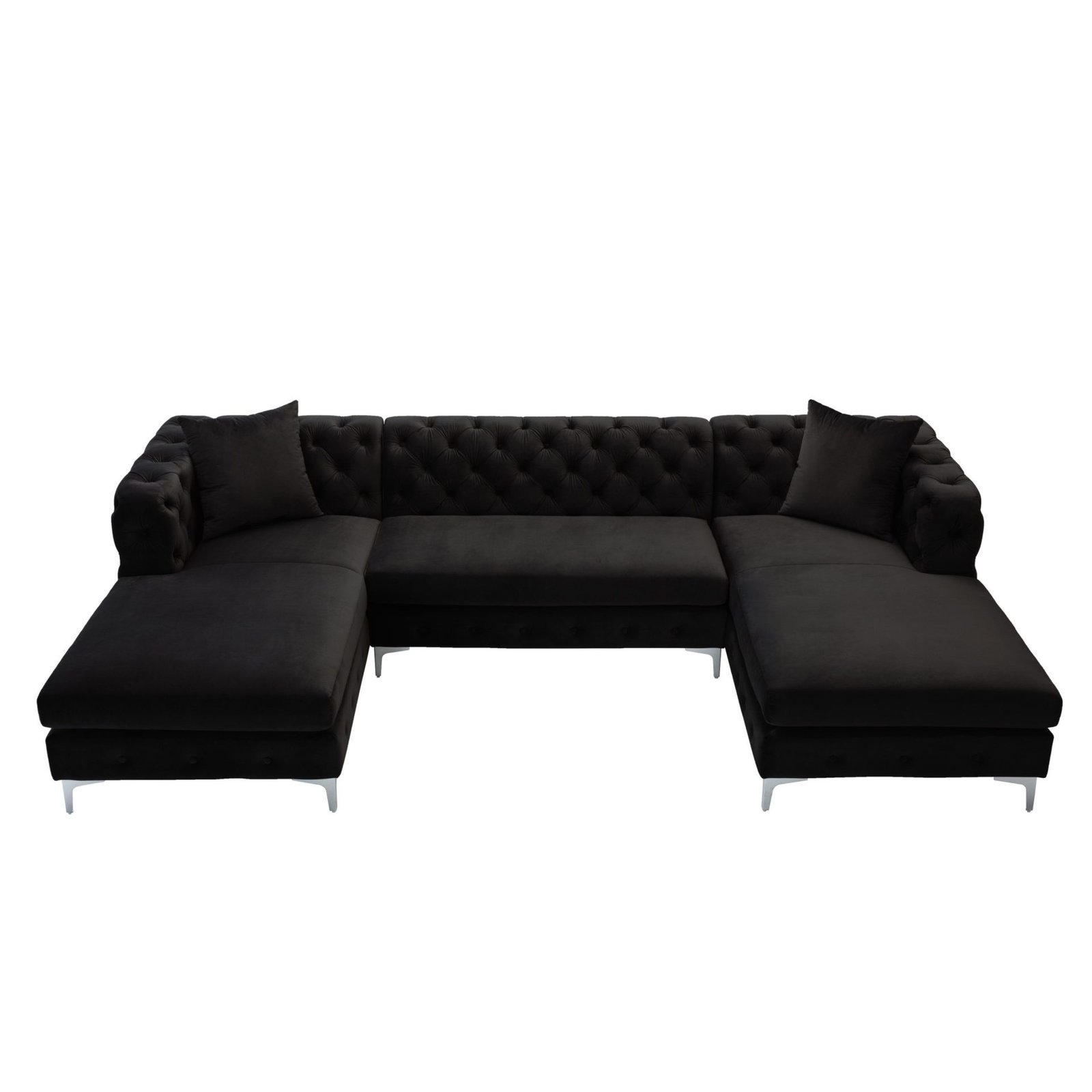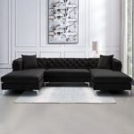 With this U-shaped sectional couch, you may comfortably host friends and visitors. The sofa has loose back cushions and ultra-soft, long-lasting velvet upholstery. To help you choose the perfect color for you, the couch is offered in a variety of hues. Large chaise loungers on both sides are ideal for relaxing while watching a movie.