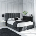 One excellent choice is the Maddox Ottoman! It combines ease, practicality, and style. The elegant velvet upholstery in anthracite gray complements the style of any bedroom. It has a softly cushioned headboard with a lovely curve that makes it a relaxing spot to read or watch TV. Because of its exquisite design and stud accents, the headboard becomes the focal point of your bedroom.