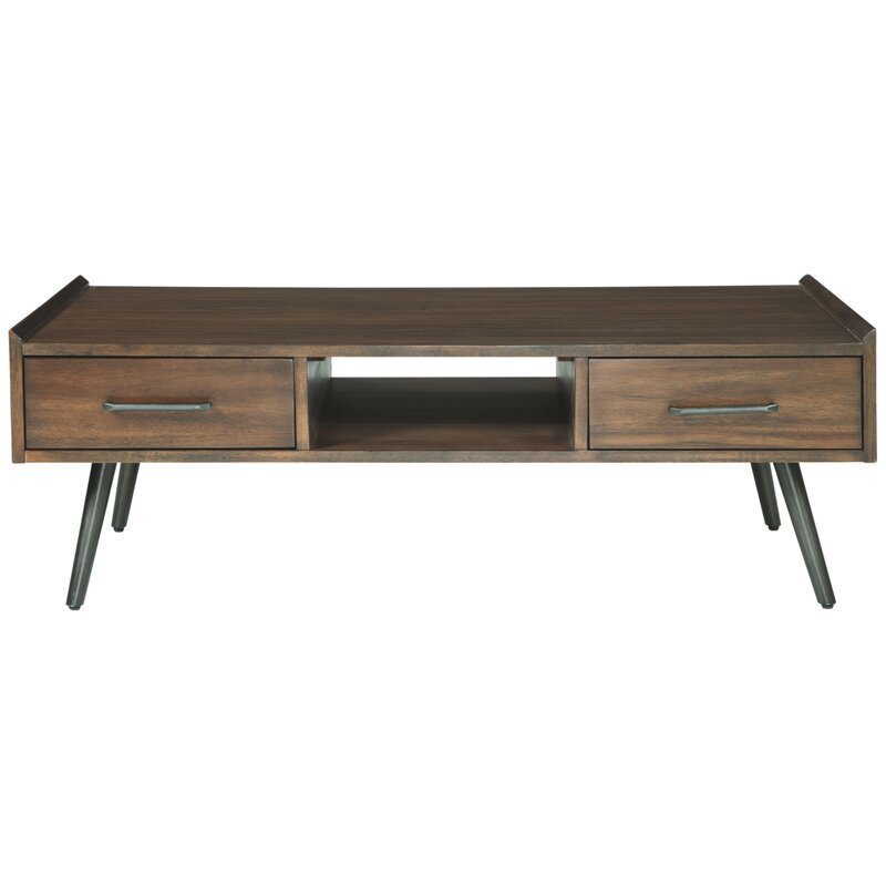This coffee table is a wonderful illustration of mid-century design with chic, contemporary flair. An ultra-linear tabletop is supported by a canted circular metal leg, giving it a distinctive appearance that displays your sense in aesthetic beauty.