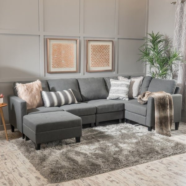 Any living area can accommodate this gorgeous 7-piece modular sectional couch with ottoman, which will dazzle your visitors. The cozy