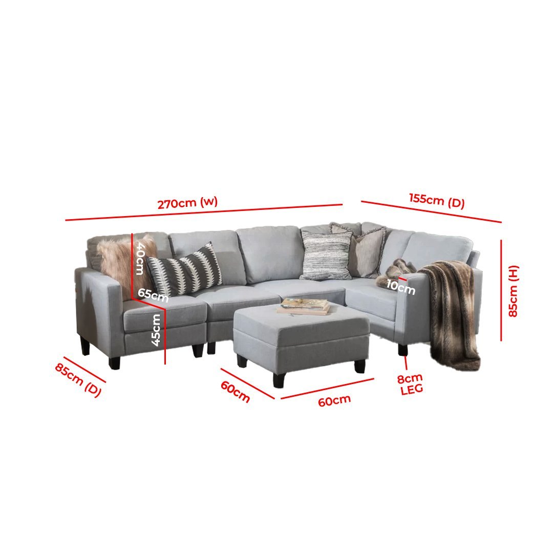 • Dimensions overall: 270cm W x 155cm D x 85cm H