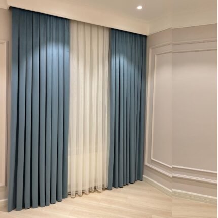 Create a serene and modern ambiance in your space with this Sky Blue Blackout & Sheer Curtain Set. The elegant